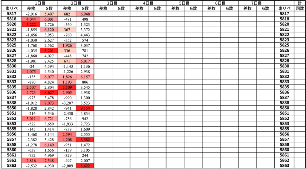 ✅対象4台/44台、平均+1,855枚、平均5,156G
