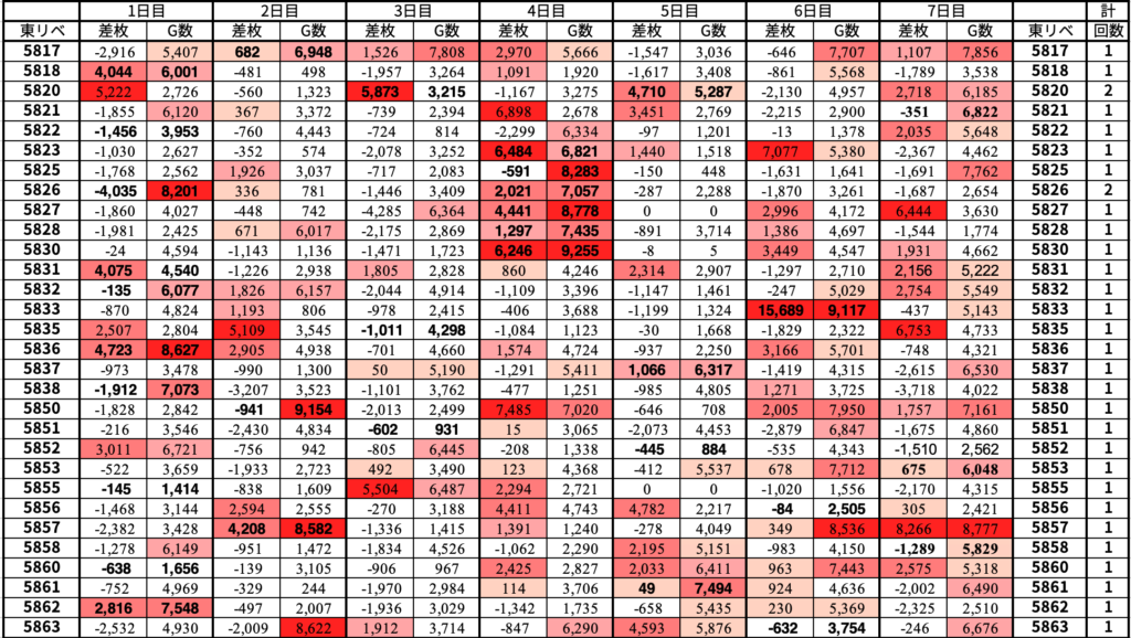🔥東リベは対象はマイナスではあるが、全台平均ではプラス結果❗️平均回転数も盛り上がっていたことを表している。
