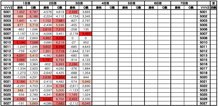 ✅対象7台/44台、平均882枚、平均5,423G