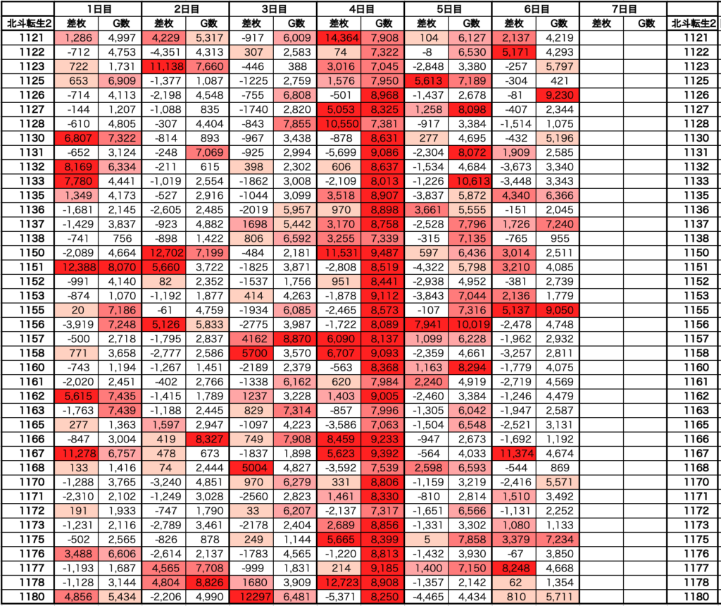 ✅対象5台/40台、平均➕️497枚、平均5,213G