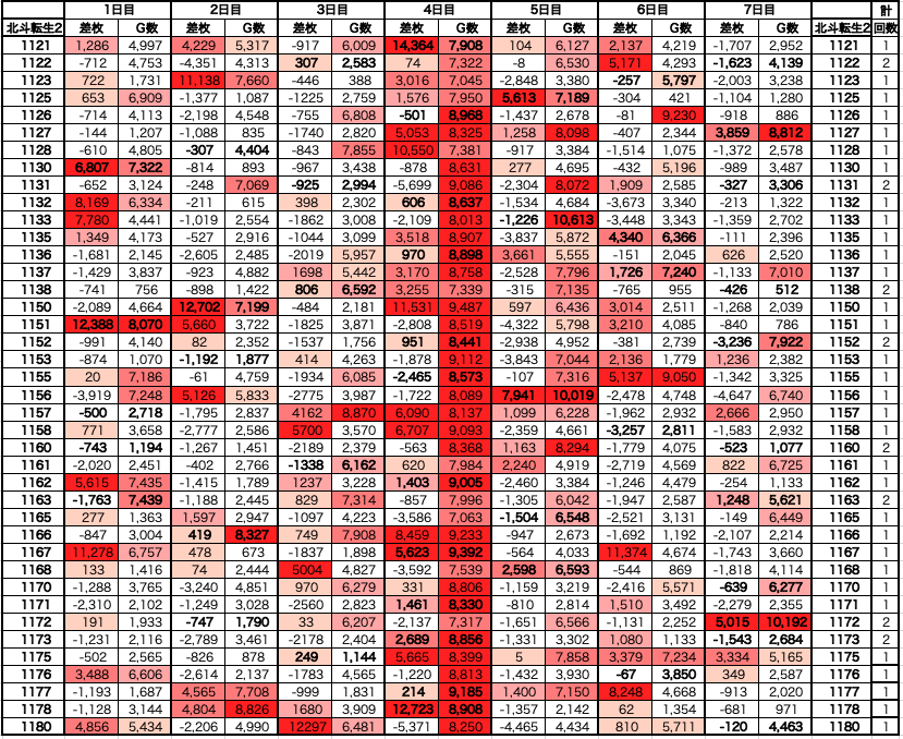 ✅対象11台/40台、平均+153枚、平均4,280G